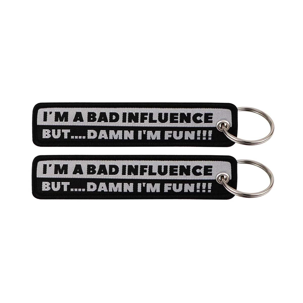 I'm A Bad Influence But Damn I'm Fun Embroidered Keyring Keychain Description: