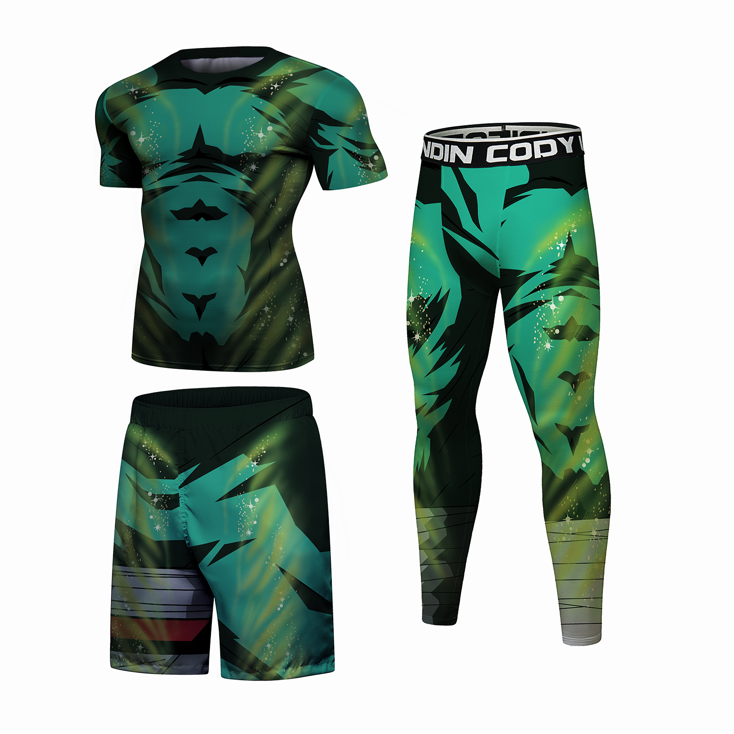This set is ideal for a variety of sports enthusiasts, whether you're a bodybuilder, MMA fighter, boxer, or engaged in Brazilian Jiu Jitsu (BJJ). With its stylish design, you'll not only perform at your best but also look great while doing it. The Naruto 'Rock Lee | 2.0' Elite Three Piece Short Sleeve Compression Rash Guard Set is your gateway to unleashing your inner champion.
