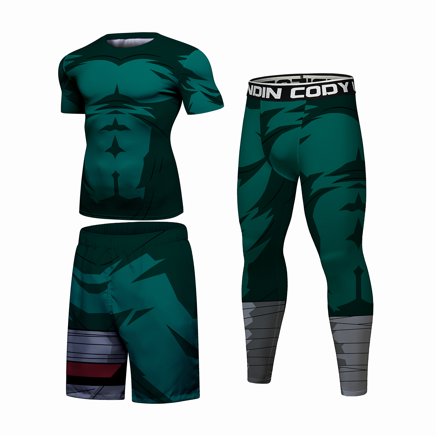 This set includes everything you need to conquer your fitness goals: fight shorts, a compression short sleeve top, and leggings. Ideal for bodybuilders, No Gi fighters, boxers, and wrestlers, this Naruto 'Rock Lee' Elite Three Piece Short Sleeve Compression Rash Guard Set is your ultimate ally in the pursuit of excellence. Elevate your training experience and embrace your superhero spirit with this dynamic gear!