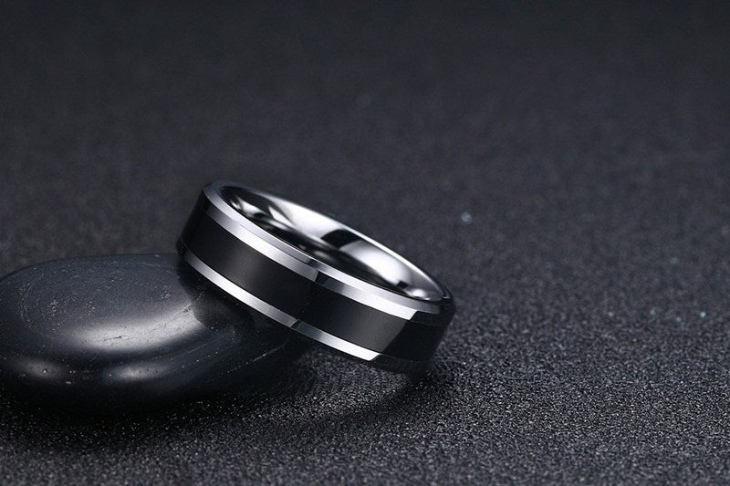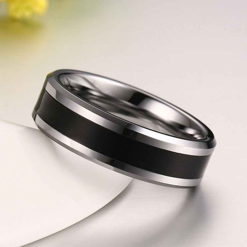 Order your Men's 6mm Silver and Black Inner Tungsten Carbide Ring today!