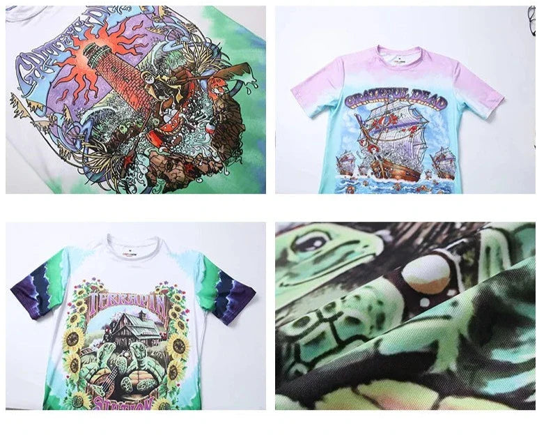 Introducing The Grateful Dead 'Lighthouse' Short Sleeve Compression Rashguard, the ultimate expression of your love for the iconic band and a stylish addition to your activewear collection. This exceptional rashguard combines comfort, function, and a vibrant design that showcases your dedication to the Grateful Dead legacy. With its eye-catching artwork featuring dancing bears and psychedelic skulls, you'll feel inspired and energized every time you wear it.