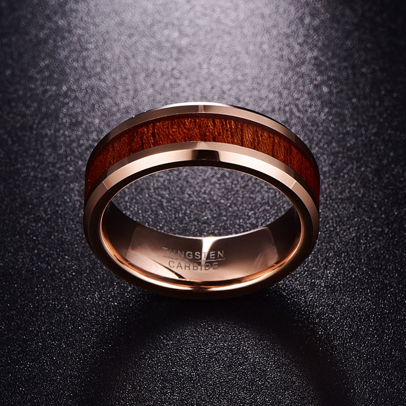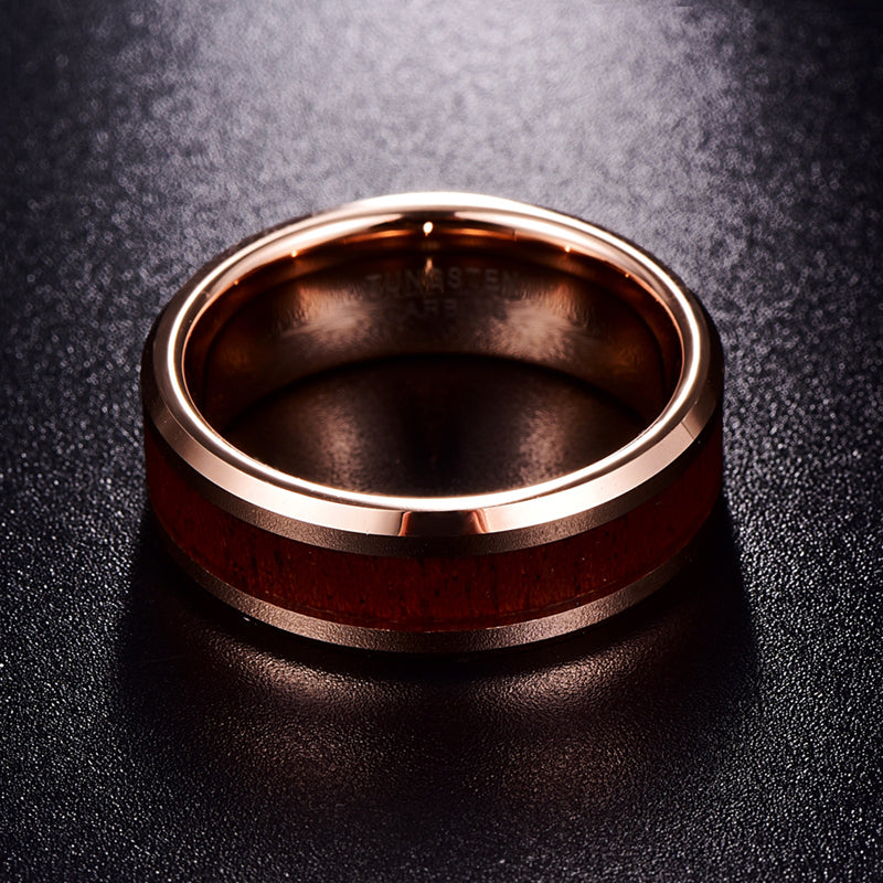 Order your Women's 8mm Hawaiian Koa Wood Inlay Rose Gold Tungsten Carbide Ring today!