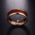 Women's 8mm Hawaiian Koa Wood Inlay Rose Gold Tungsten Carbide Ring