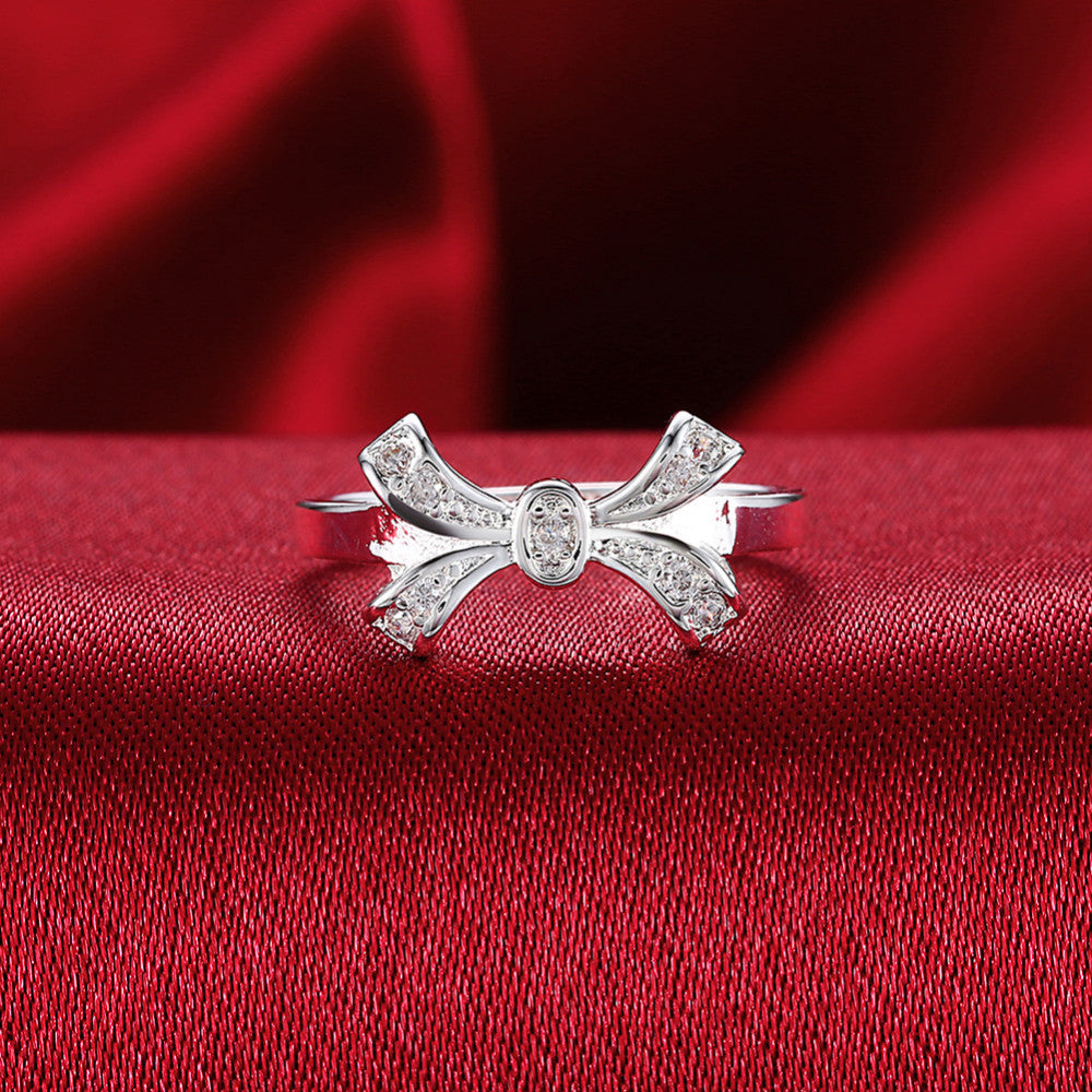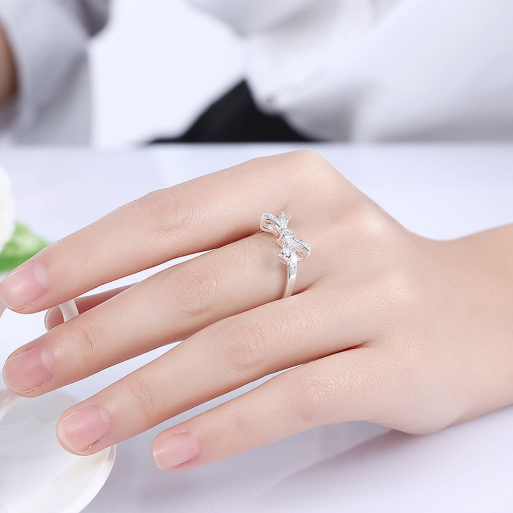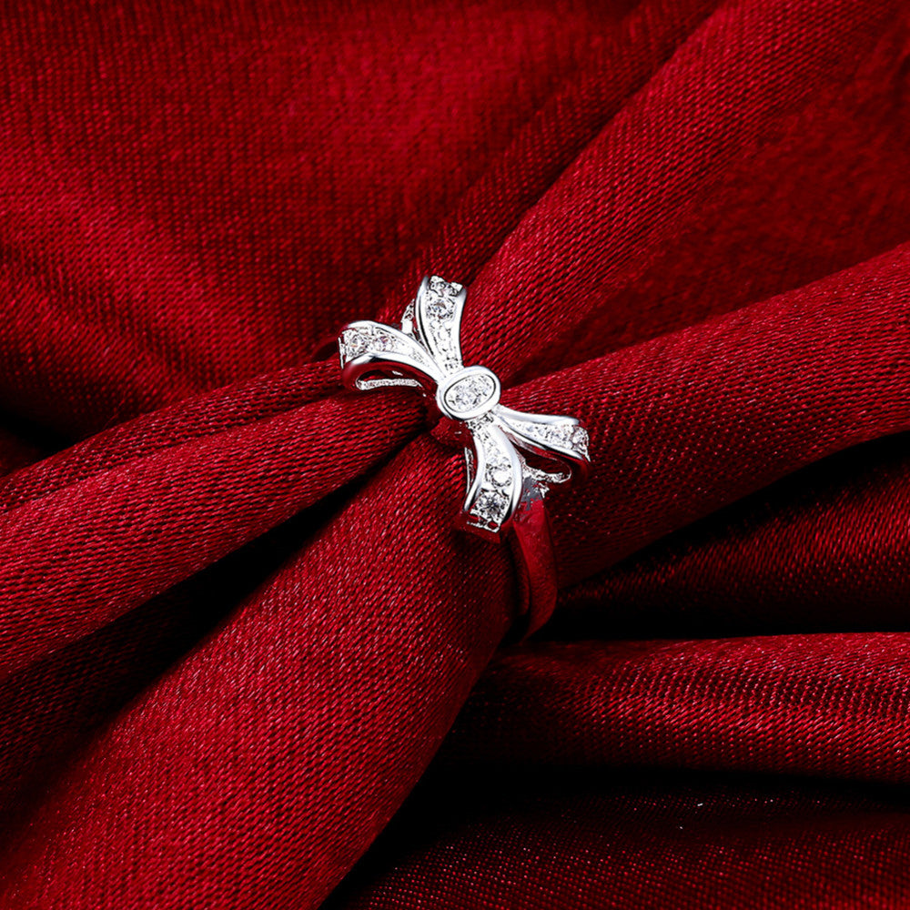 Women's Elegant Bow CZ Silver Plated Ring