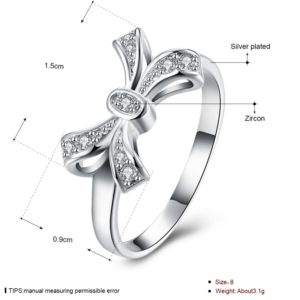 Women's Elegant Bow CZ Silver Plated Ring Description: