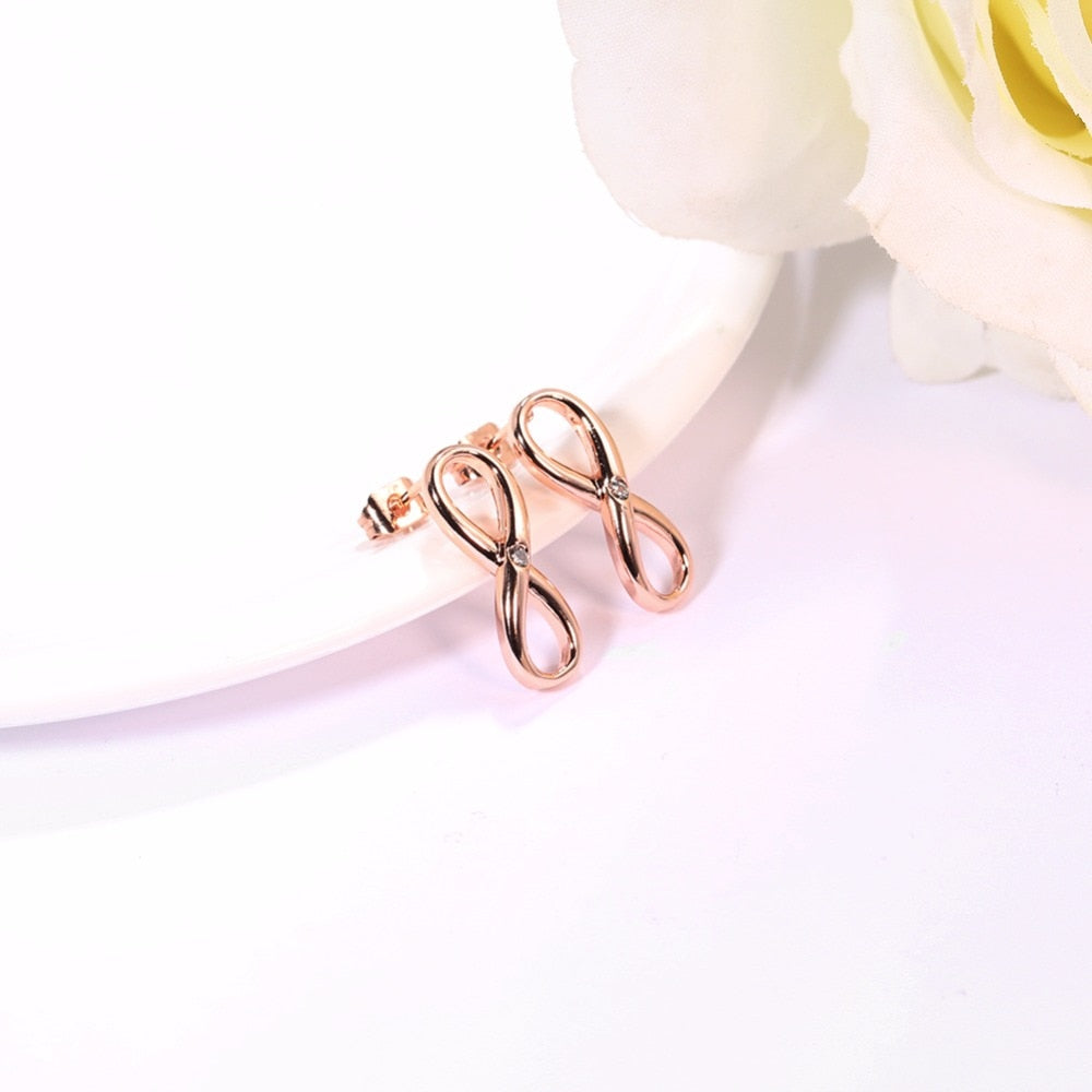 Rose Gold And CZ Infinity Shape Stud Earrings