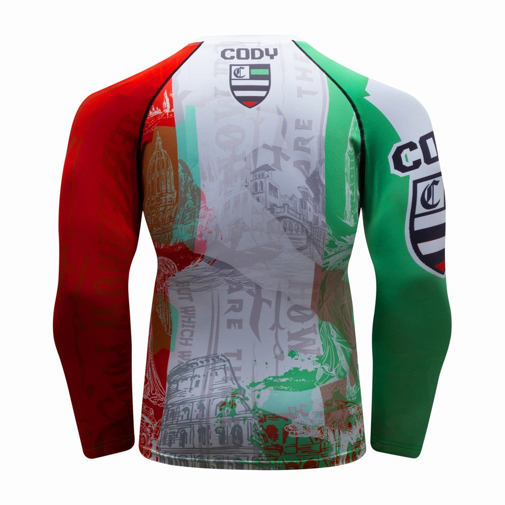 Showcase your Italian pride while elevating your training with the Italian Flag Compression 'Forza Azzurri | Heritage' Elite Long Sleeve Rashguard. Designed for serious athletes who demand performance and style, this rashguard blends comfort, durability, and a bold heritage-inspired look.