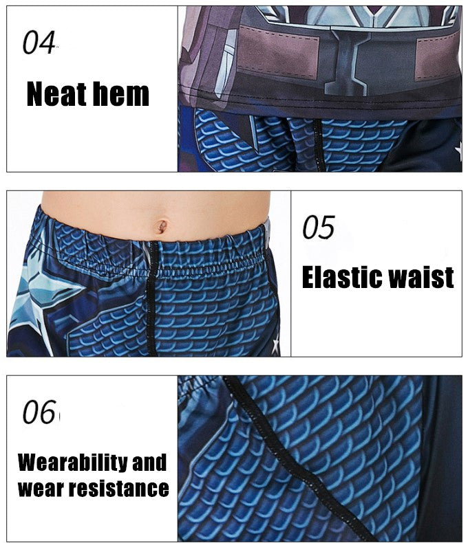 Kids will love the 3D printed compression leggings and short sleeve rashguard that showcase their favorite superhero, Captain Marvel. This Kids Captain Marvel Compression Rashguard Set not only looks cool but also keeps their muscles warm, helping to prevent strains during rigorous play.