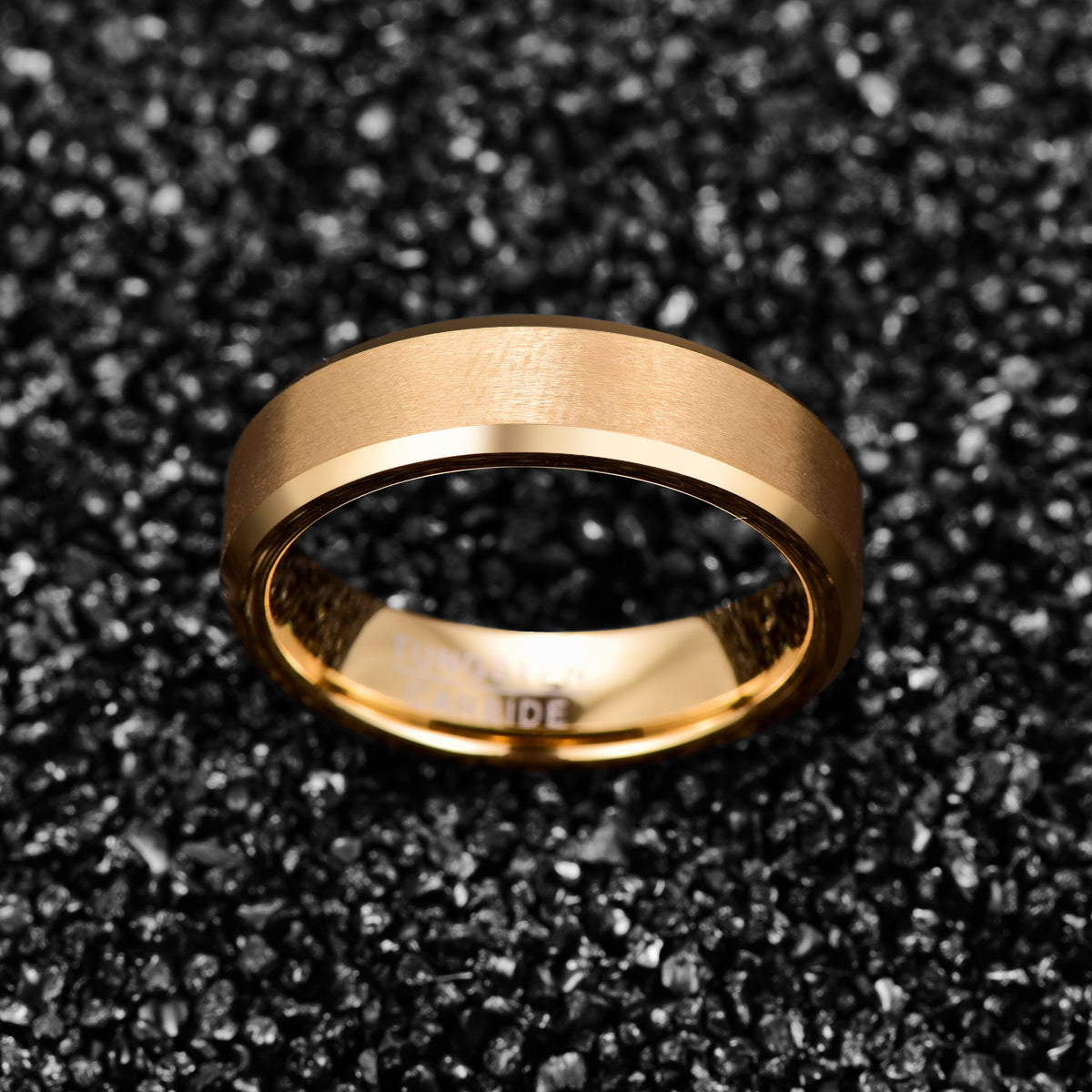 Order your Men's 6mm Gold Tungsten Carbide Matte Finish Beveled Edge Ring today!