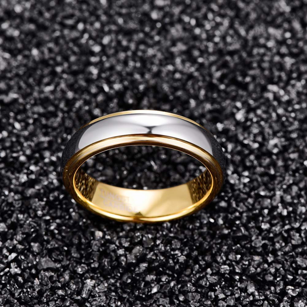 Men's 6mm Polished Gold and Silver Tungsten Carbide Ring Description: