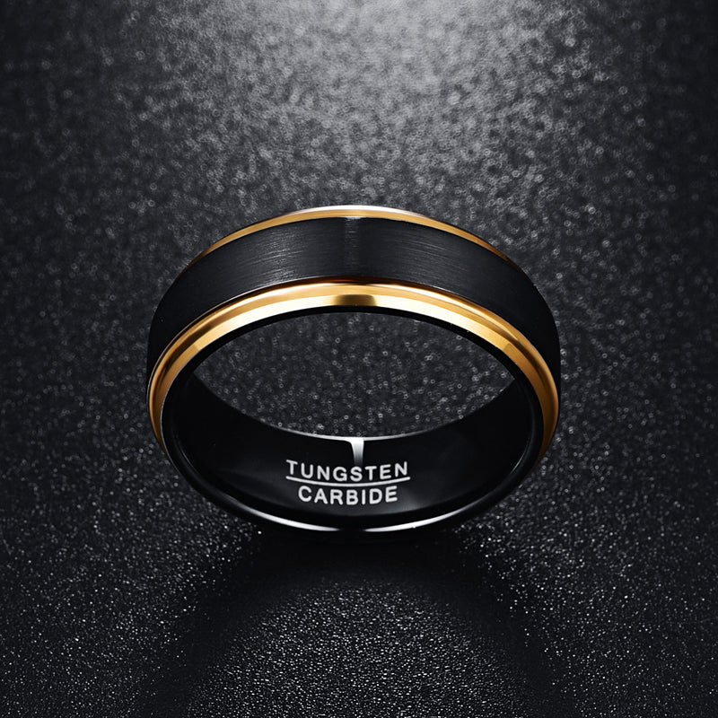 Men's 8mm Black Inner Gold Bevel Color Tungsten Carbide Ring Care Instructions: