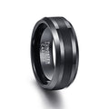 Men's 8mm Black Tungsten Carbide Brushed Center Beveled Edge Ring