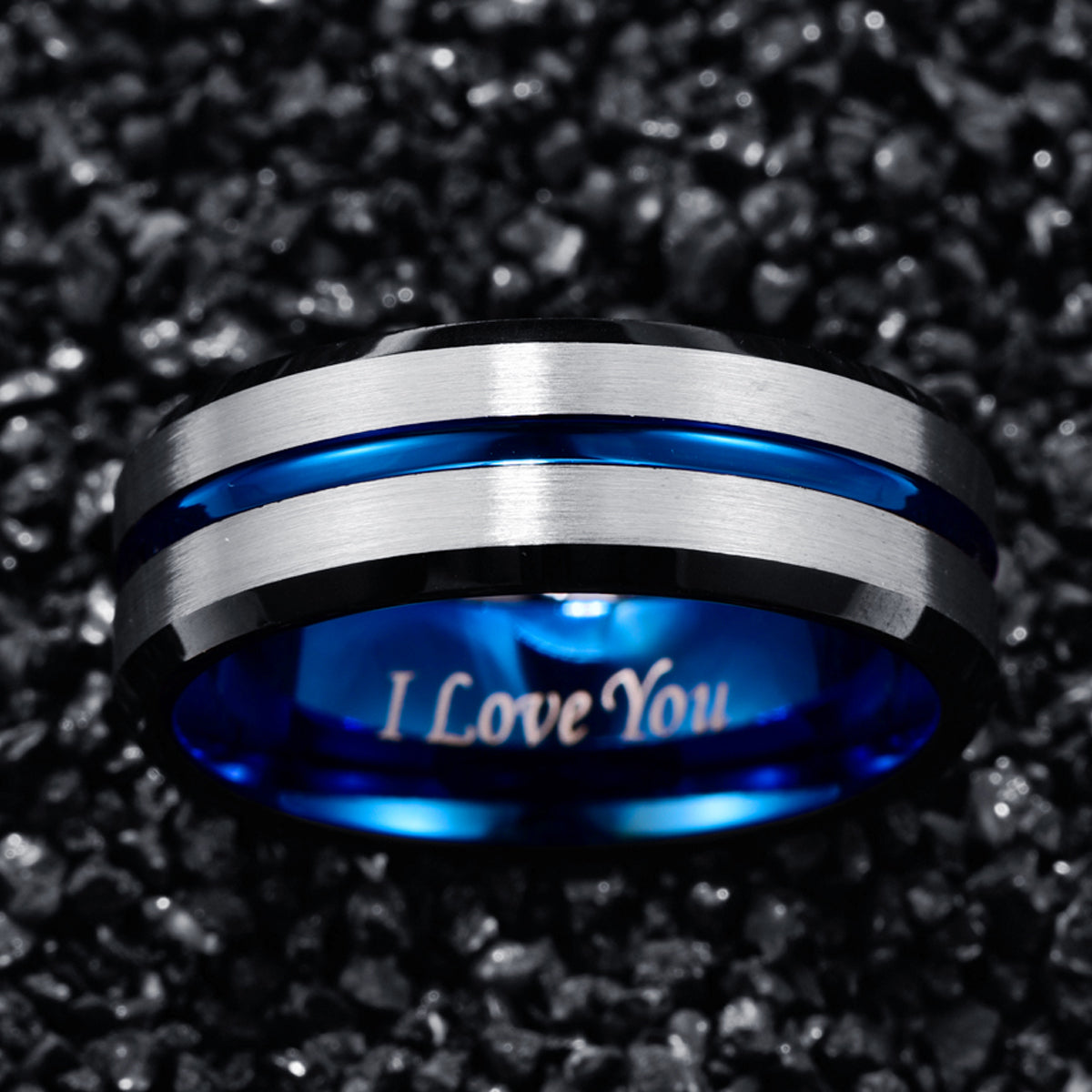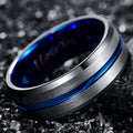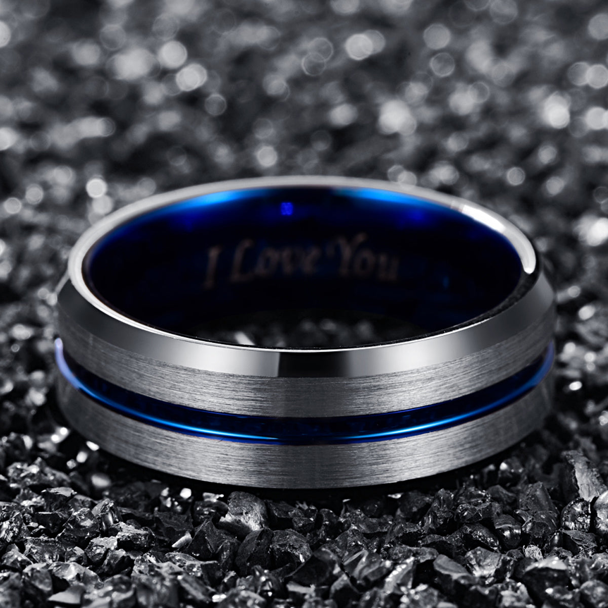 Order your Men's 8mm Blue Bevel Inner Brushed Tungsten Carbide Ring today!