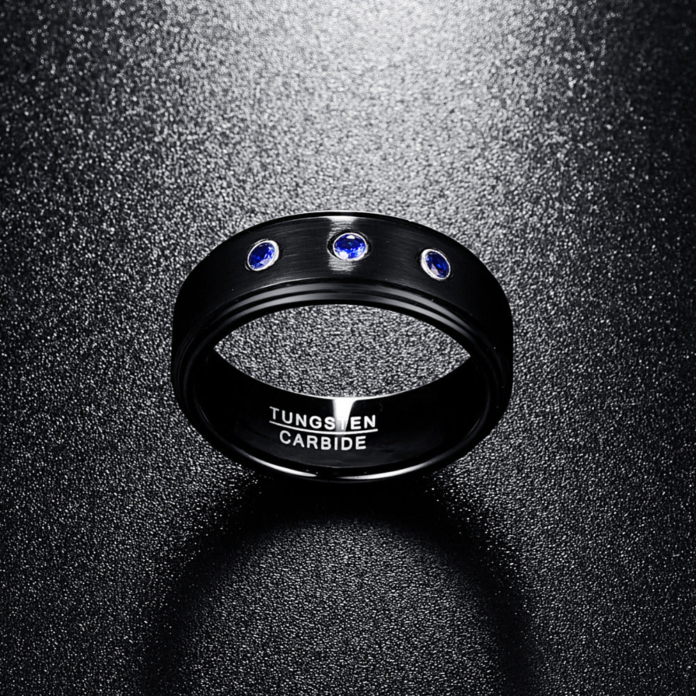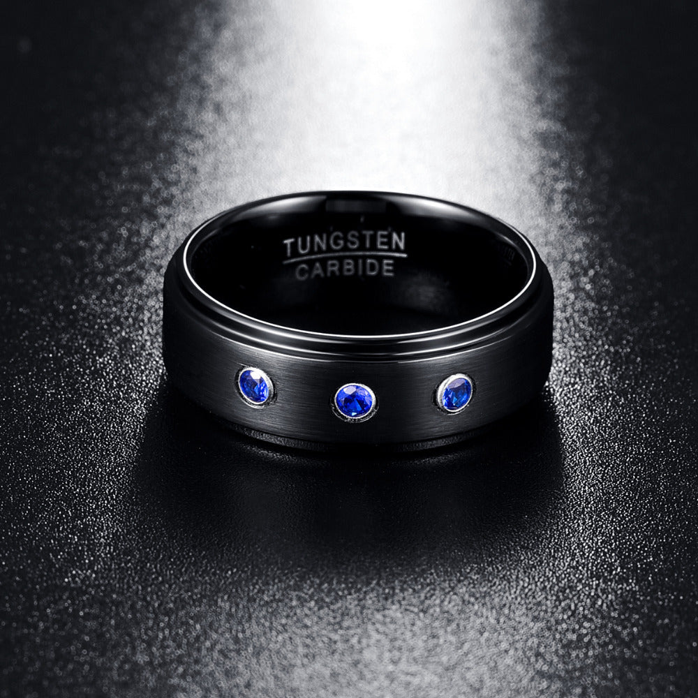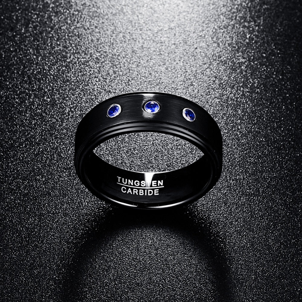 Order your Men's 8mm Blue CZ Brushed Finish Tungsten Carbide Ring today!