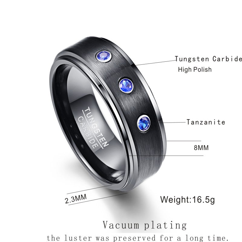 Men's 8mm Blue CZ Brushed Finish Tungsten Carbide Ring Care Instructions: