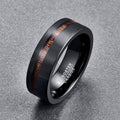 Men's 8mm Brushed Black Matte Acacia Wood Inlay Tungsten Carbide Ring