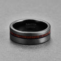 Order your Men's 8mm Brushed Black Matte Acacia Wood Inlay Tungsten Carbide Ring today!