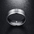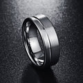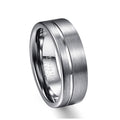 Men's 8mm Brushed Silver Offset Groove Tungsten Carbide Ring