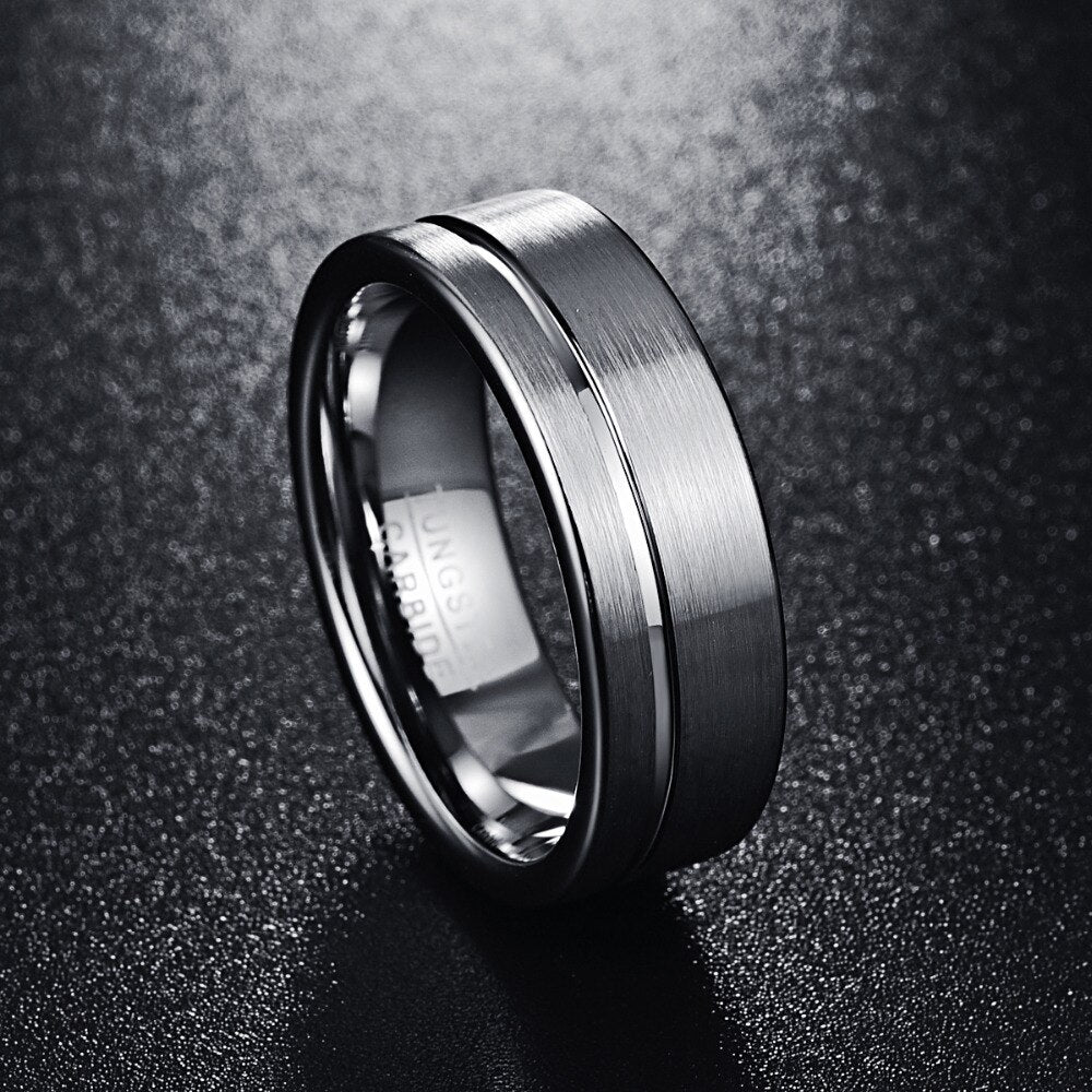Order your Men's 8mm Brushed Silver Offset Groove Tungsten Carbide Ring today!