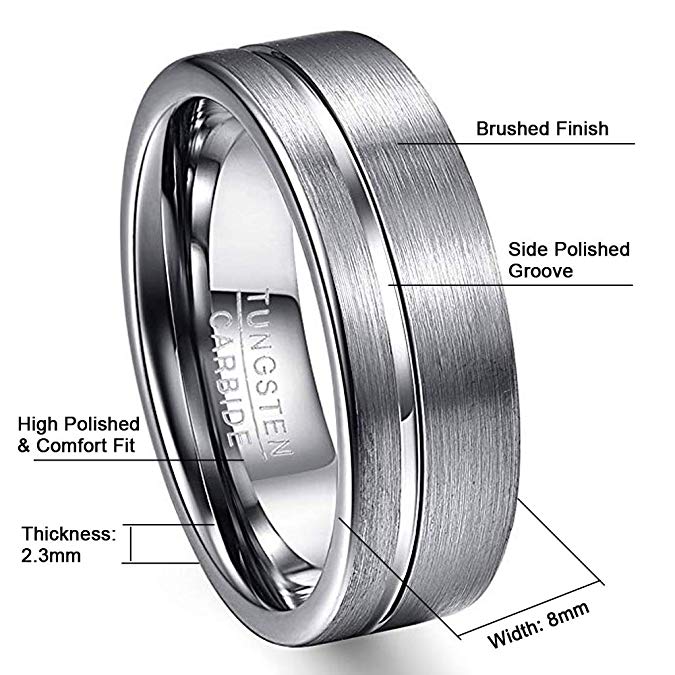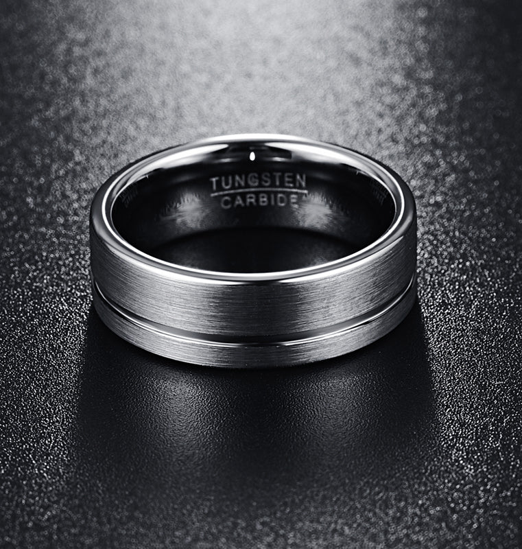 Men's 8mm Brushed Silver Offset Groove Tungsten Carbide Ring Care Instructions: