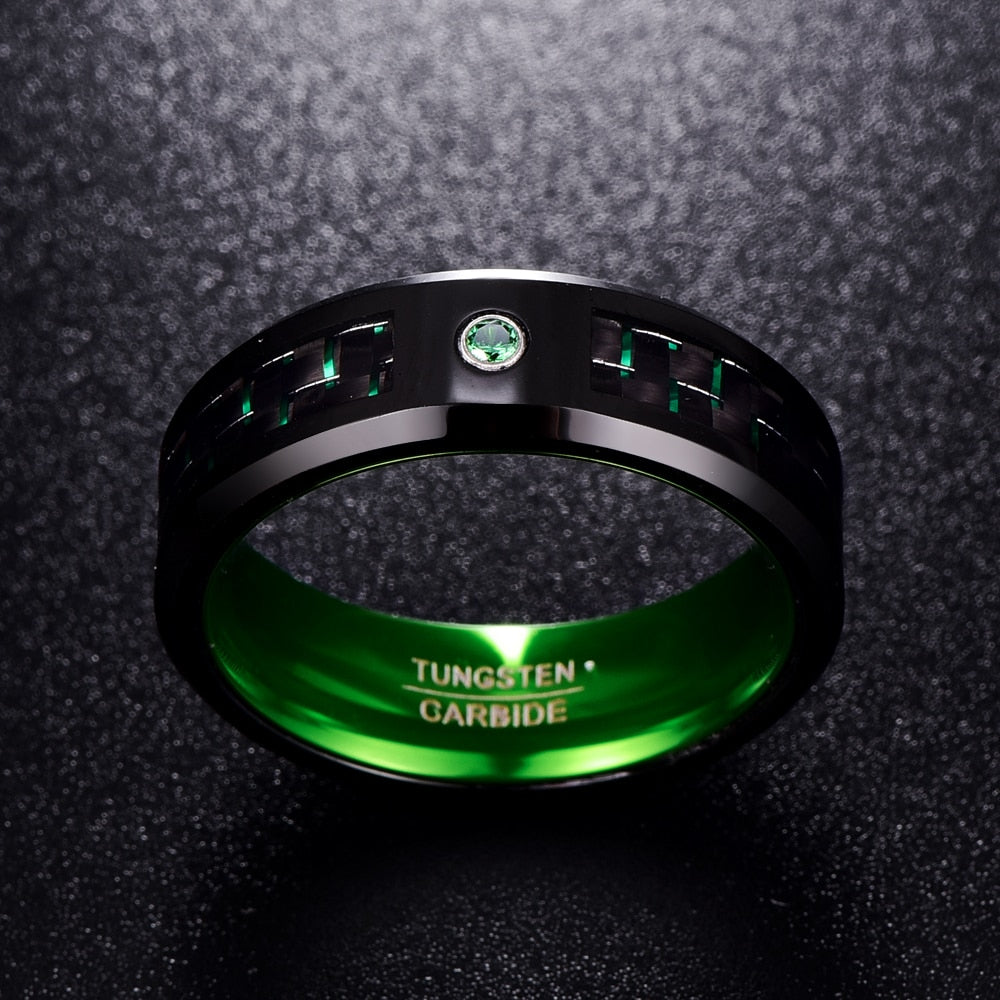 Order your Men's 8mm Green Carbon Fiber and Green CZ Inner Tungsten Carbide Ring today!