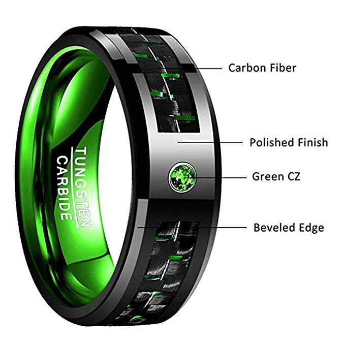 Men's 8mm Green Carbon Fiber and Green CZ Inner Tungsten Carbide Ring Care Instructions: