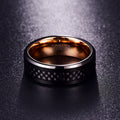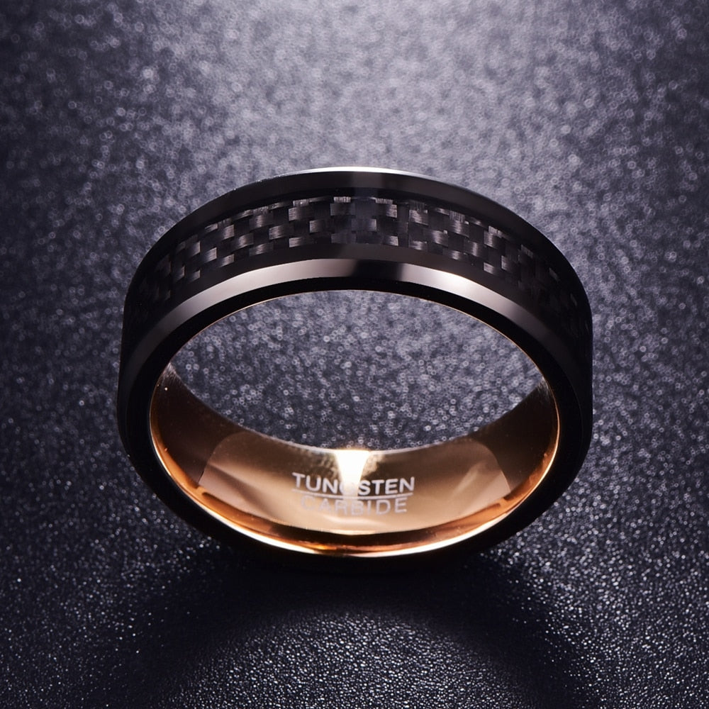 Men's 8mm Inlaid Black Carbon Fiber Rose Gold Inner Tungsten Carbide Ring