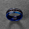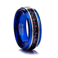 Men's 8mm Inlaid Red Carbon Fiber Blue Tungsten Carbide Ring