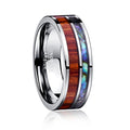 Men's 8mm Inlay Wood and Opal Polished Tungsten Carbide