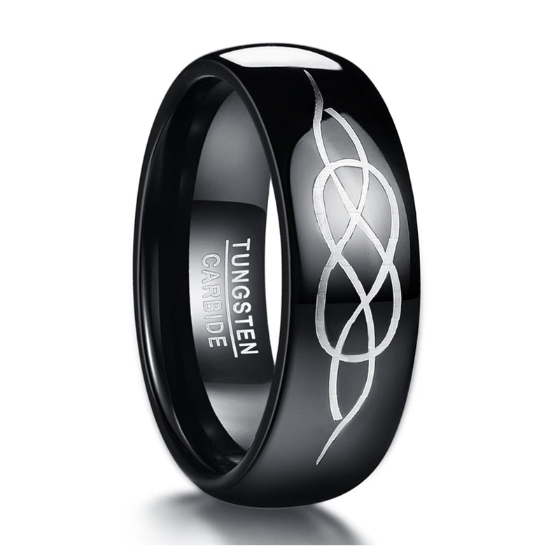 Men's 8mm Laser Etched Knot Black Tungsten Carbide Ring