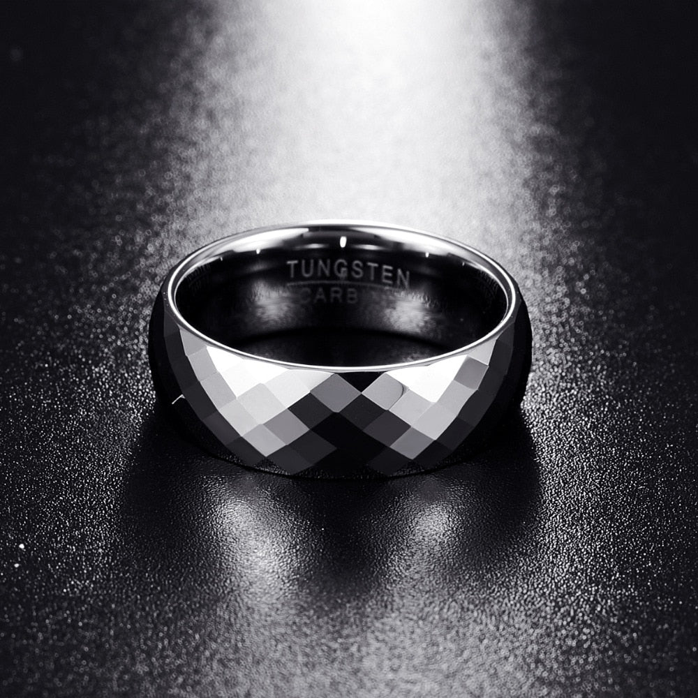 Order your Men's 8mm Multi-Faceted High Polished Tungsten Carbide Ring today!