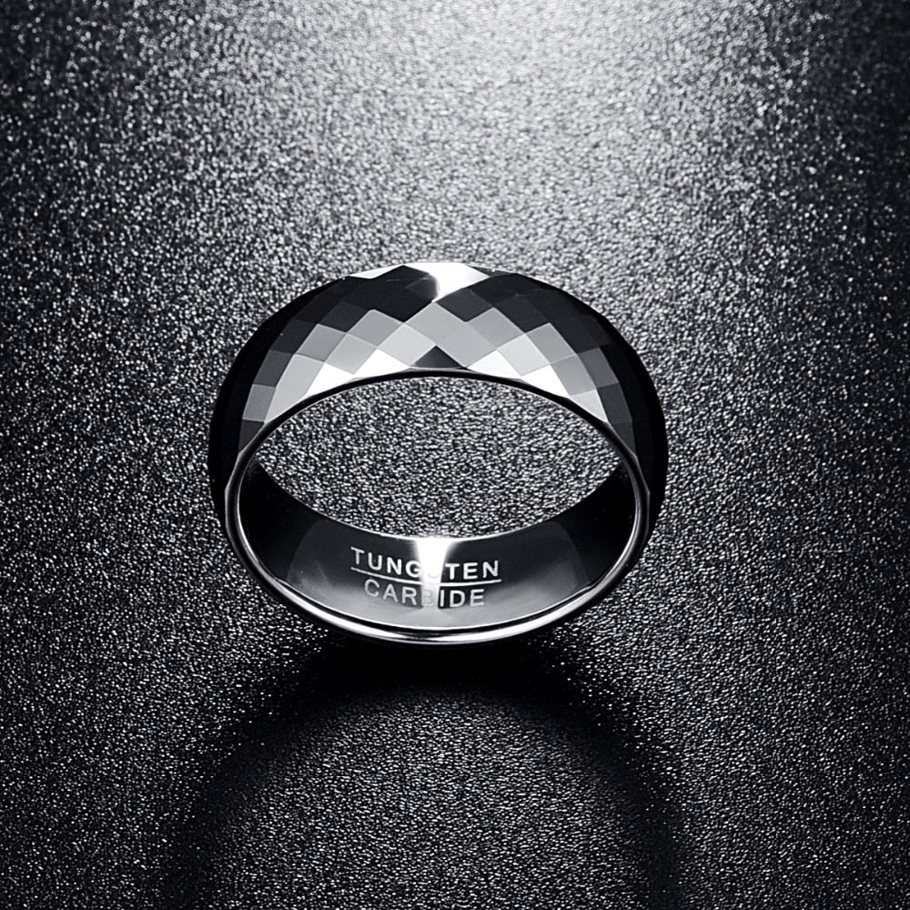 Men's 8mm Multi-Faceted High Polished Tungsten Carbide Ring Description: