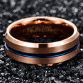 Men's 8mm Rose Gold Blue Groove Inner Tungsten Carbide Ring