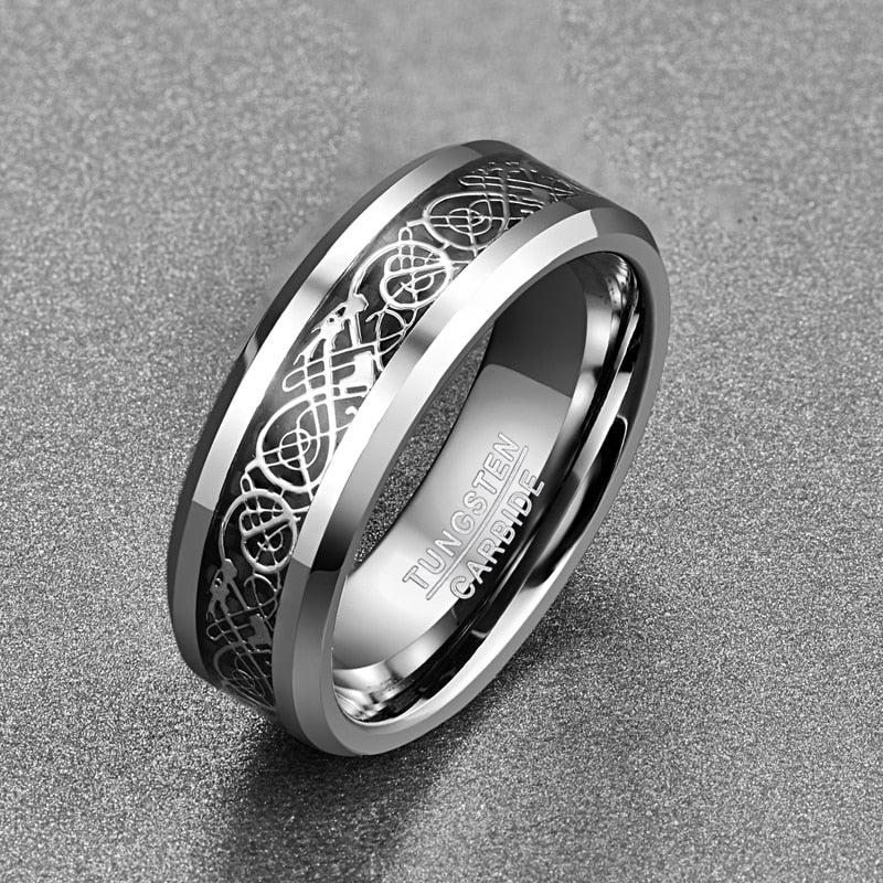 Men's 8mm Silver Dragon Tungsten Carbide Ring Description: