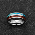 Men's 8mm Steel Tungsten Carbide Inlaid Green Opal Acacia Wood Ring