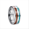 Order your Men's 8mm Steel Tungsten Carbide Inlaid Green Opal Acacia Wood Ring today!
