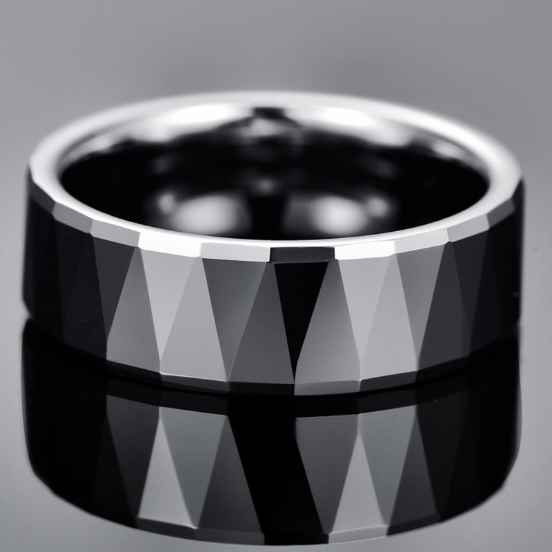 Men's 8mm Tungsten Carbide Batch Steel Ring Description: