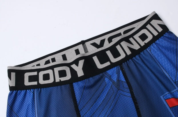 The Men's Captain Marvel Carol Danvers Premium Compression Set features a striking design that mirrors Captain Marvel's iconic look. The bodysuit is primarily blue with bold red accents, complete with her symbolic gold star at the center. This compression set not only looks fantastic but is also crafted from a premium blend of Spandex and high-quality polyester, ensuring utmost comfort during any activity.