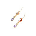 Retro Star And Moon Rhinestone Amethyst Color Drop Earrings