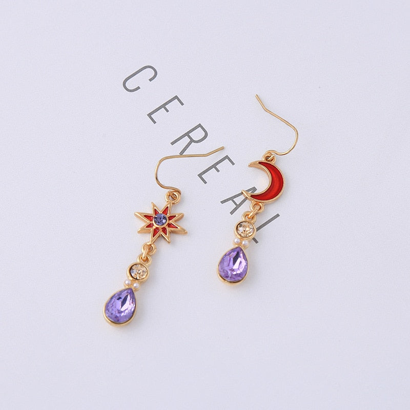 Order your Retro Star And Moon Rhinestone Amethyst Color Drop Earrings today!