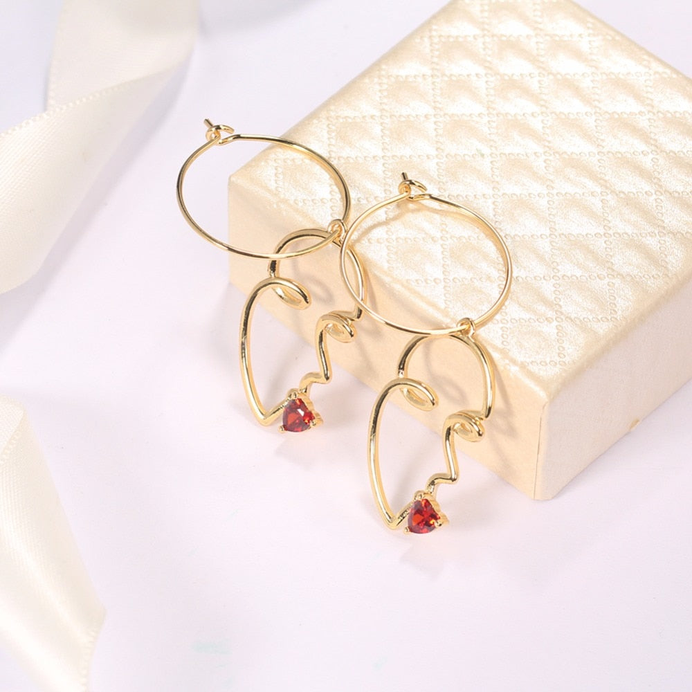 Ruby Stone And Smile Kiss Drop Earrings