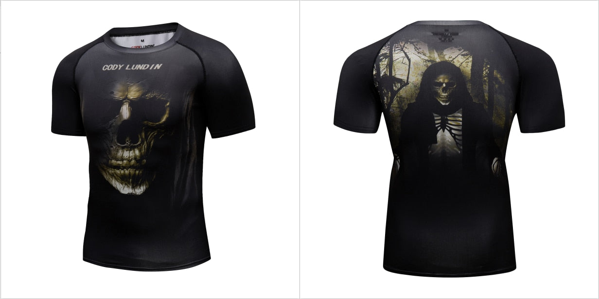 Order your Skull Compression 'In the Shadows' Elite Short Sleeve Rashguard today and prepare to face your training head-on with style and strength!