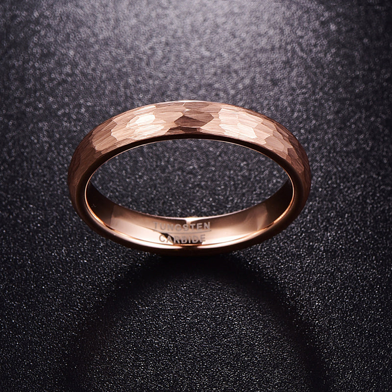 Women's 4mm Hammered Rose Gold Tungsten Carbide Ring Description: