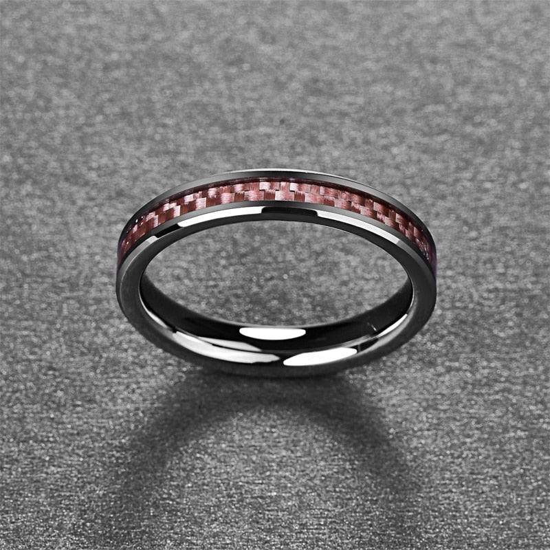 Women's 4mm Inlaid Pink Carbon Fiber Polished Tungsten Carbide Ring Care Instructions:
