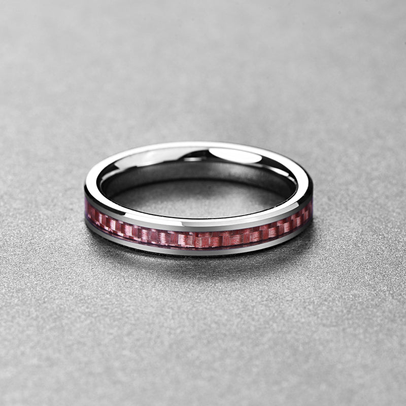 Women's 4mm Inlaid Pink Carbon Fiber Polished Tungsten Carbide Ring