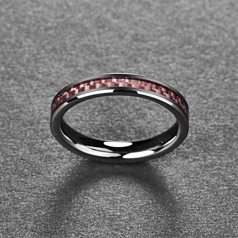 Women's 4mm Inlaid Pink Carbon Fiber Polished Tungsten Carbide Ring Description: