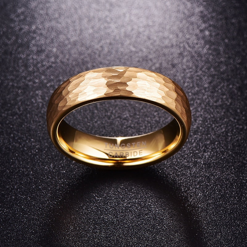 Women's 6mm Hammered Gold Tungsten Carbide Ring Description: