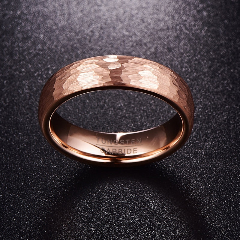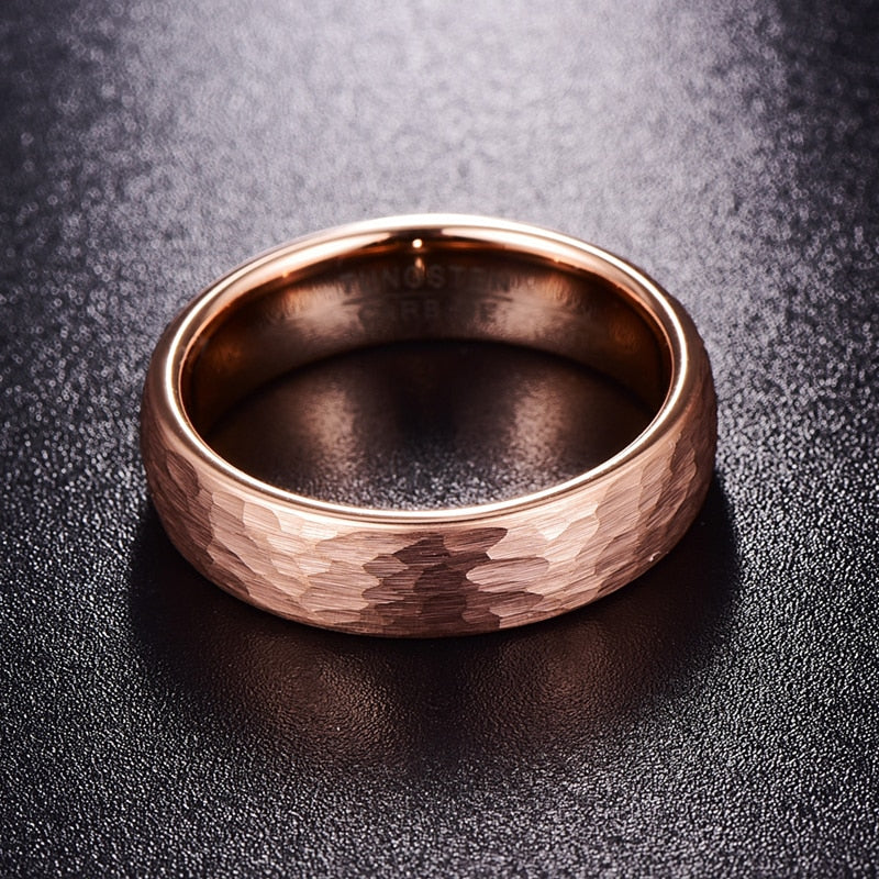 Women's 6mm Hammered Rose Gold Tungsten Carbide Ring Description: