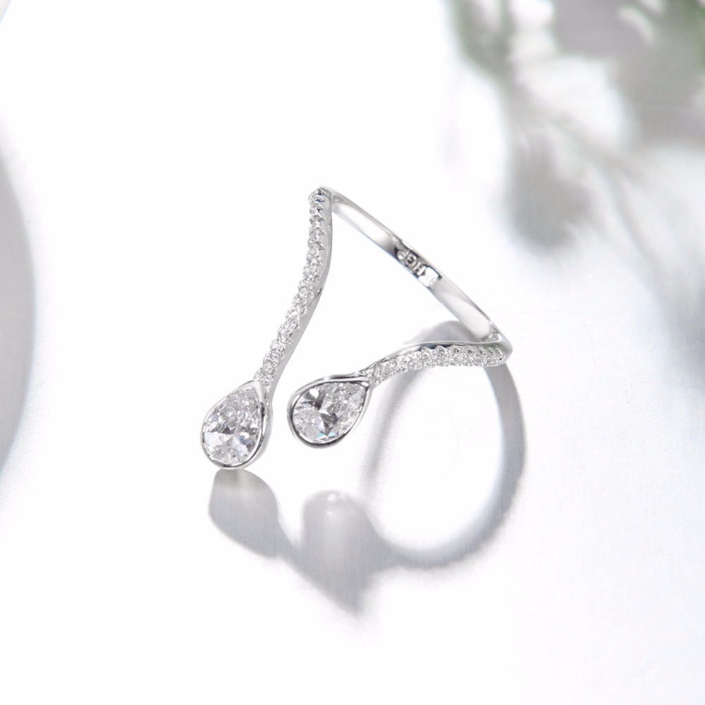 Women's Adjustable Water Drop CZ Ring Description: