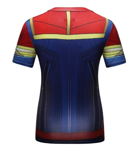 Women's Captain Marvel Carol Danvers Compression Elite Short Sleeve Rashguard Description: